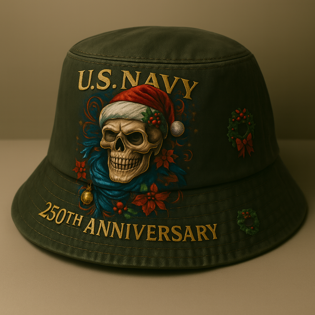 🎅⚓ U.S. Navy Christmas Skull Bucket Hat | 250th Anniversary Edition | Holiday Honor & Courage
