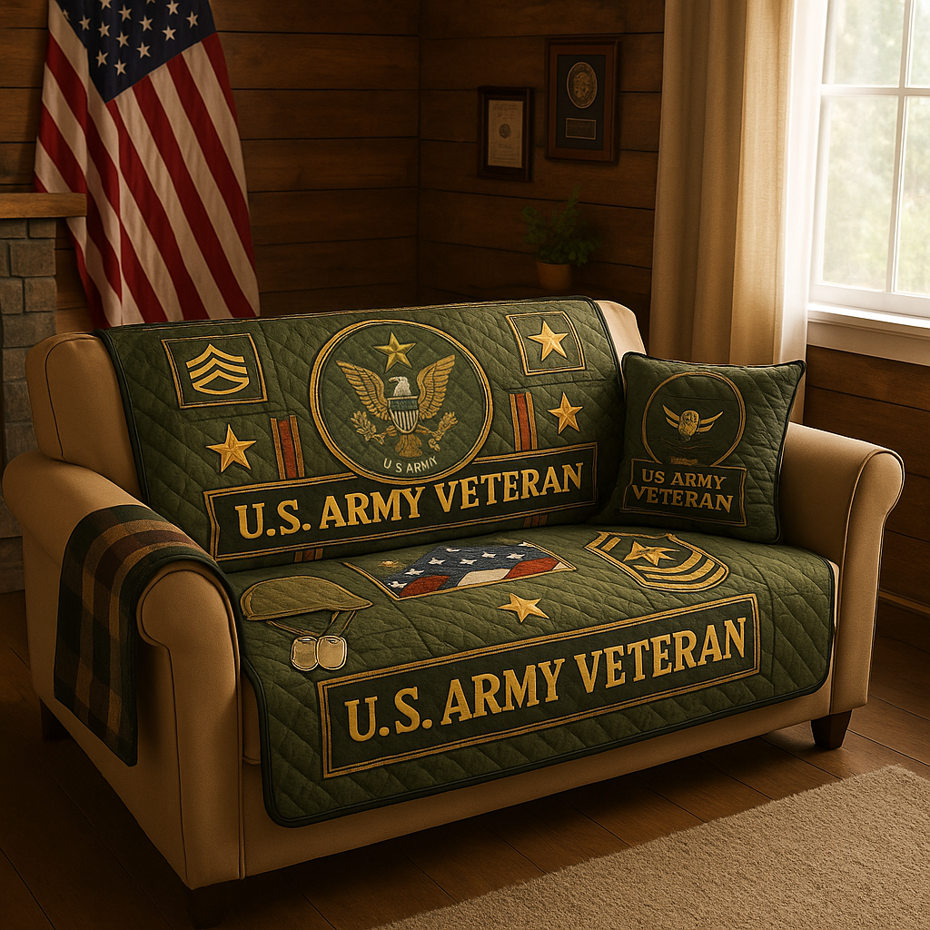 ⭐ U.S. ARMY VETERAN SOFA COVER SET — “PRIDE OF SERVICE” 🇺🇸