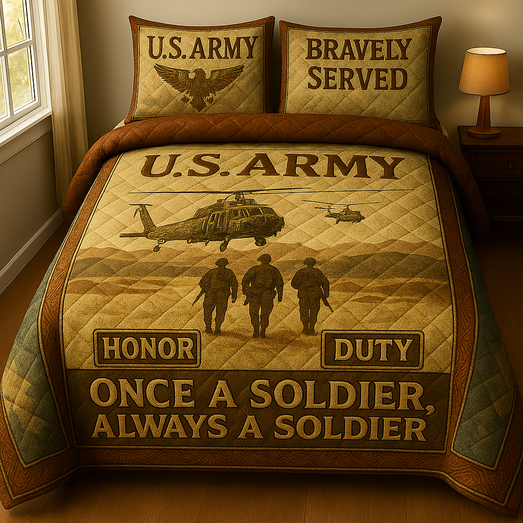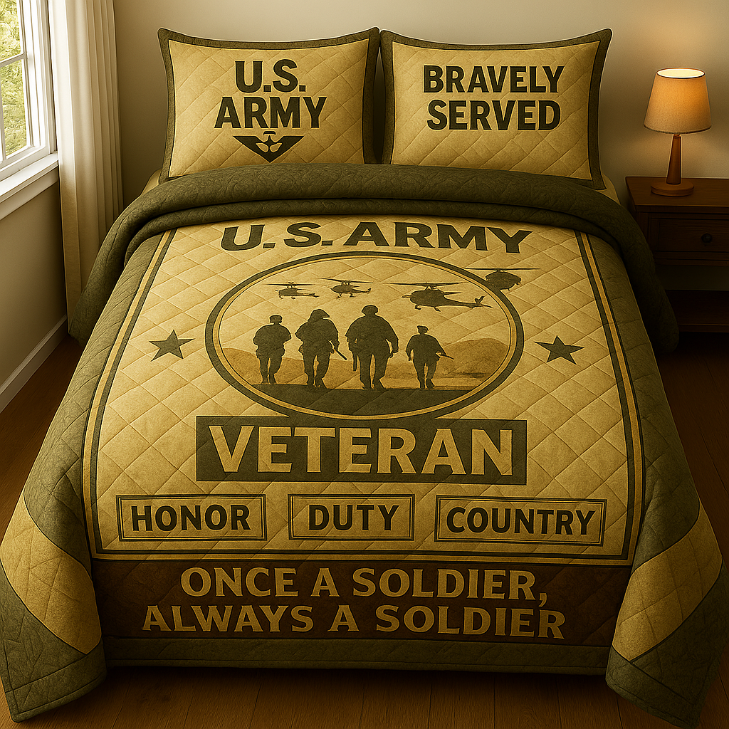 U.S. ARMY VETERAN BEDDING SET – “ONCE A SOLDIER, ALWAYS A SOLDIER” 💛🔥