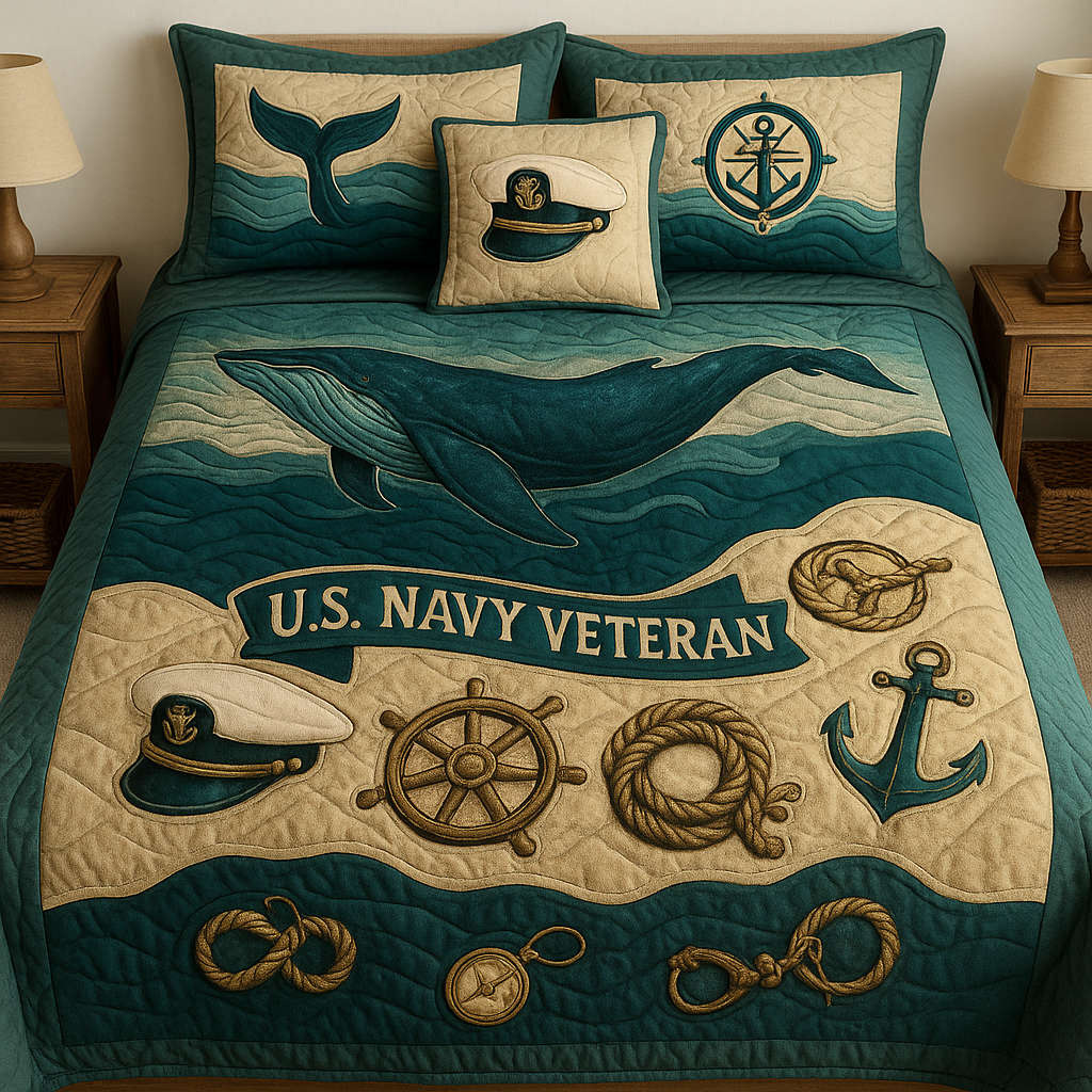⚓ U.S. NAVY VETERAN BEDDING SET – “GUARDIANS OF THE DEEP” 🐋💙