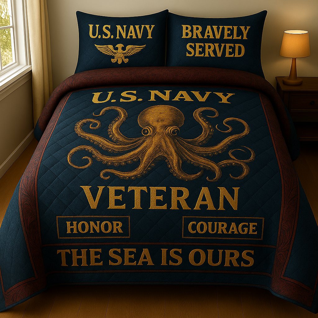 ⚓ U.S. NAVY VETERAN BEDDING SET – “THE SEA IS OURS” 💙🐙