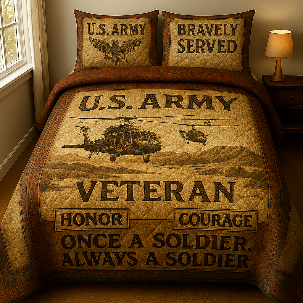 🚁 U.S. ARMY VETERAN BEDDING SET – “HONOR & COURAGE IN THE AIR” 💛🔥