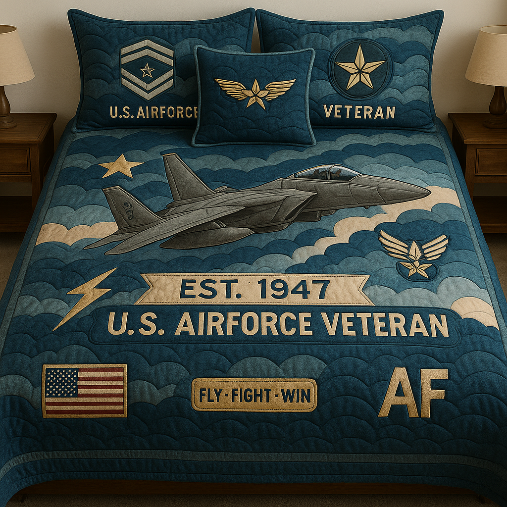 ⭐ U.S. AIR FORCE VETERAN QUILT SET — “FLY. FIGHT. WIN.” ✈️🇺🇸