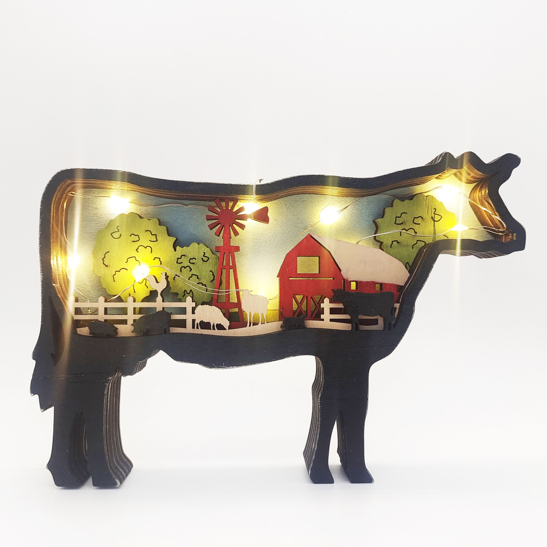 Wooden Cow Farm Light – Rustic Barnyard Scene Night Decor