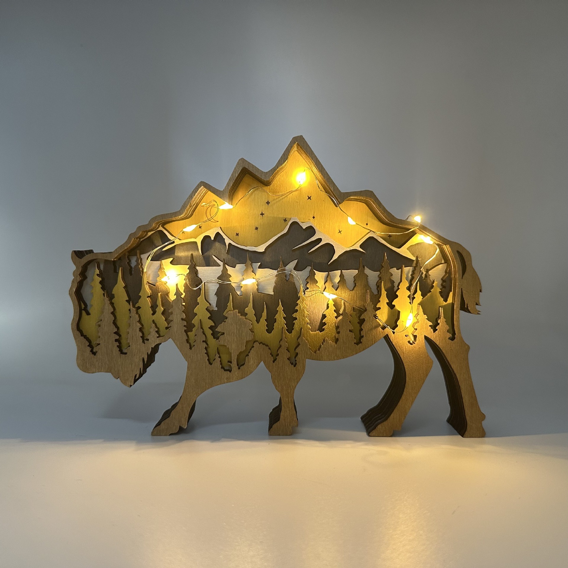 Wooden Bison Mountain Light – Handcrafted Western Wilderness Decor