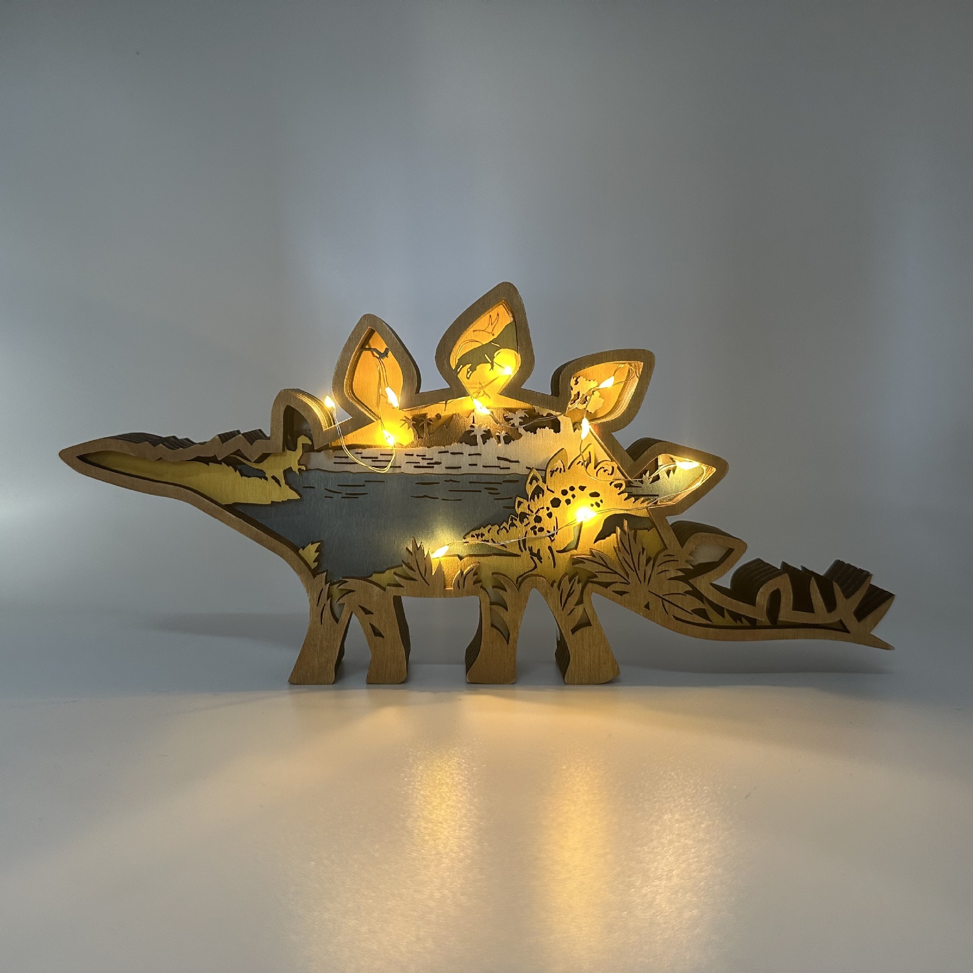 Wooden Stegosaurus Light – Handcrafted Jurassic Forest Decor