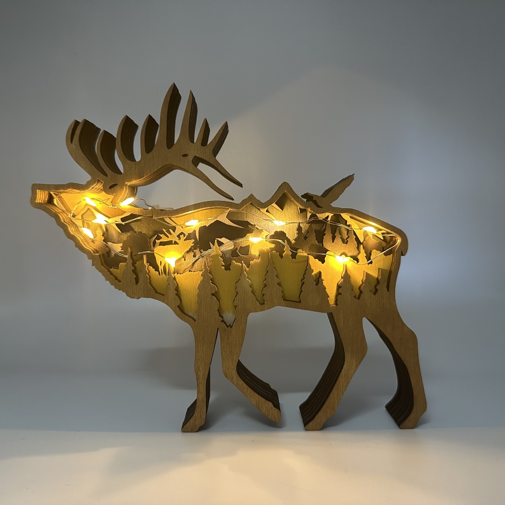 Wooden Moose Forest Light – Handcrafted Nordic Wilderness Decor