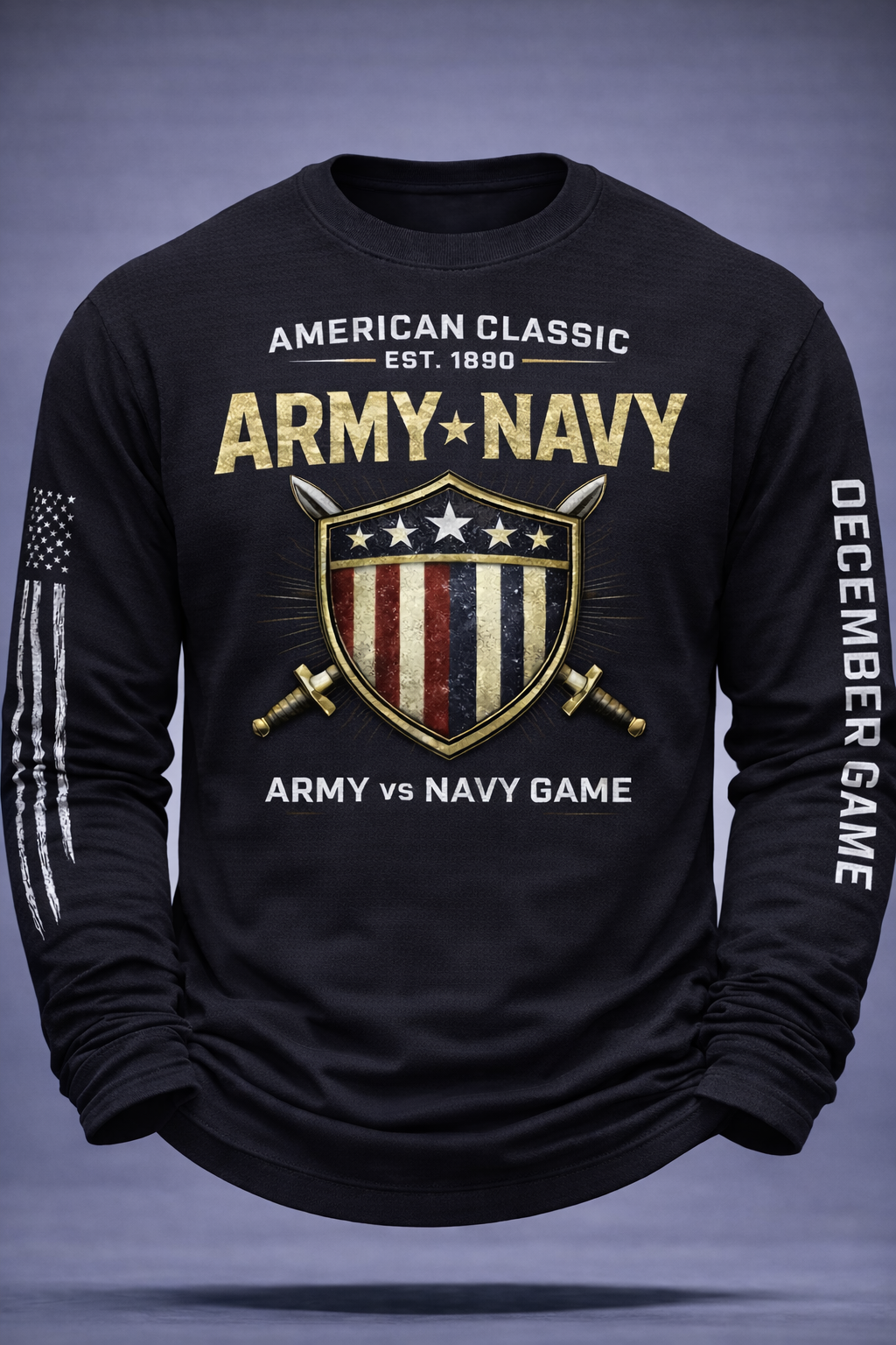 This long sleeve shirt pays tribute to one of America’s most storied traditions — a rivalry built on honor, discipline, and generations of service.