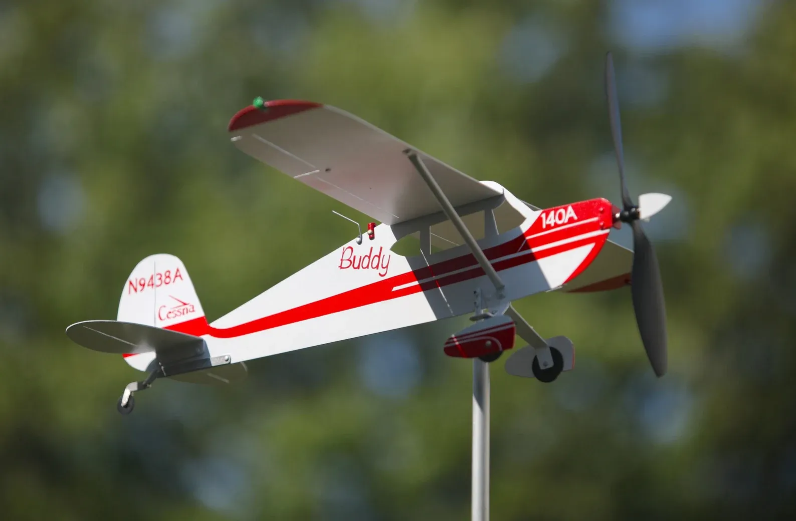 Modeled after the beloved Cessna 120/140/140A series, this handmade aluminum airplane whirligig turns a backyard breeze into a living tribute to classic light aviation. With a fuselage length of about 22 inches and a wingspan around 20 inches, it has a true “ramp-ready” presence in the garden without feeling oversized. Each aircraft is fabricated from aluminum, riveted together by hand, and no two are ever exactly alike—details evolve from build to build as the design is continuously refined. Beyond the spinning motion, the charm is in the realism: navigation lights, antennas, gear-leg steps, wheel pants, and metal-look control surfaces give every piece its own personality. These examples were customer commissions and have been sold, but new builds are made custom from your reference photos, with your choice of colors, N-number, and specific details, typically completed in 1–3 weeks.