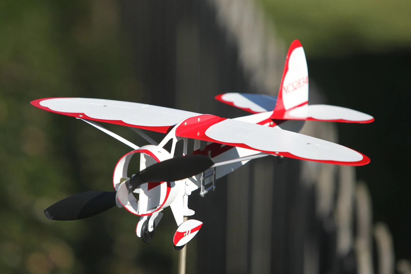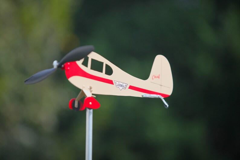 Modeled after the Aeronca Chief 11AC, this compact airplane whirligig brings classic taildragger charm to the garden in a form that moves with the wind. Built from solid aircraft-grade 6061 aluminum, it’s hand crafted to hold up outdoors while keeping a clean, vintage profile. With a fuselage length of about 16 inches, it’s ideal for smaller yards, planters, or porch displays—subtle, but instantly recognizable to general-aviation fans. This particular piece was made to match a customer’s specific full-scale airplane and has been sold, but a new one can be painted in any color you choose. Because each build is handmade and painted, yours will be very close to the example, yet always slightly different as details continue to evolve. Custom builds typically take 1–3 weeks to complete, with possible expedited options depending on workload—see the rest of the fleet (Champs, Cubs, and more) for ideas and inspiration.