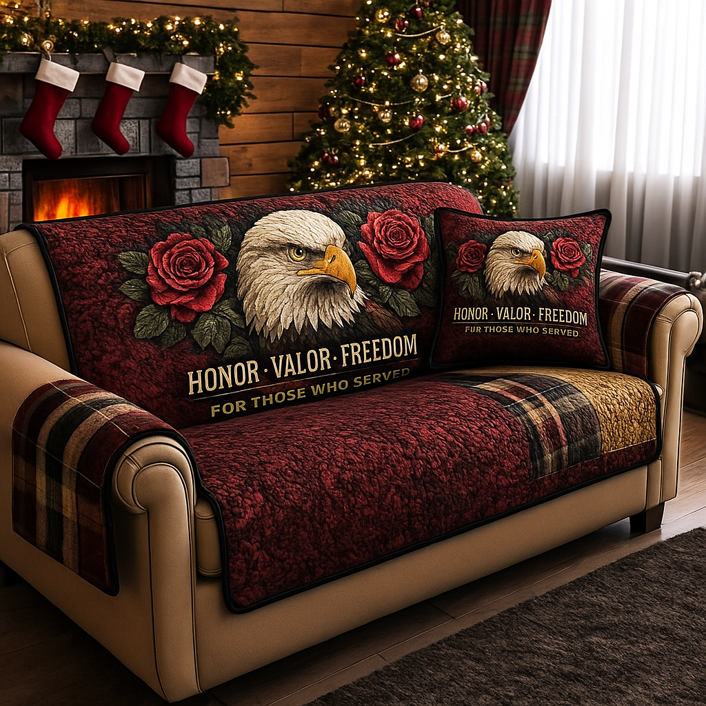 This patriotic quilted sofa cover delivers warmth, elegance, and meaningful tribute all in one.
