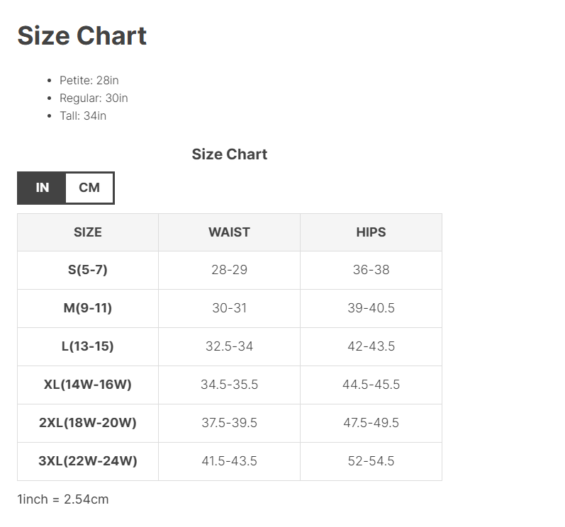 - Petite: 28in