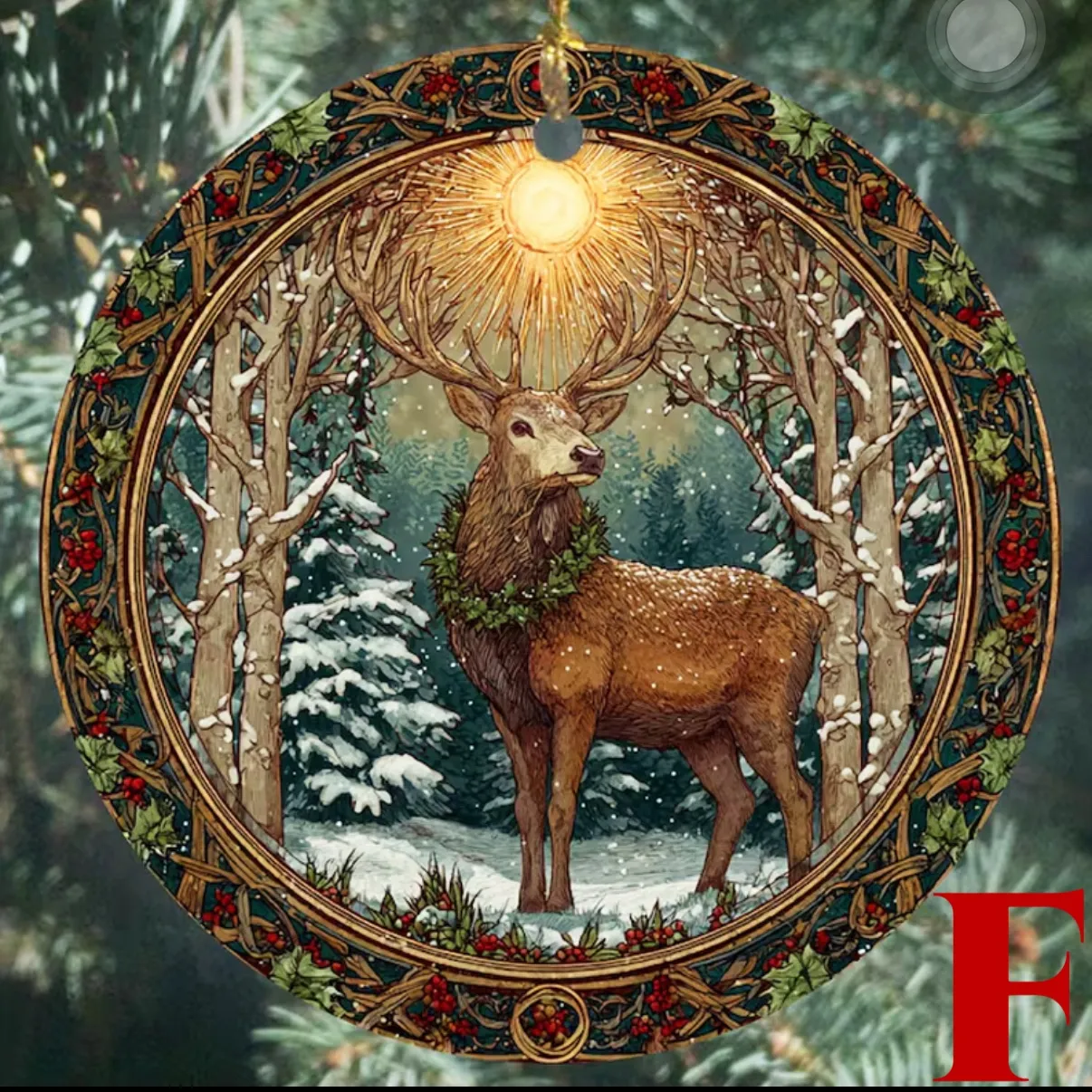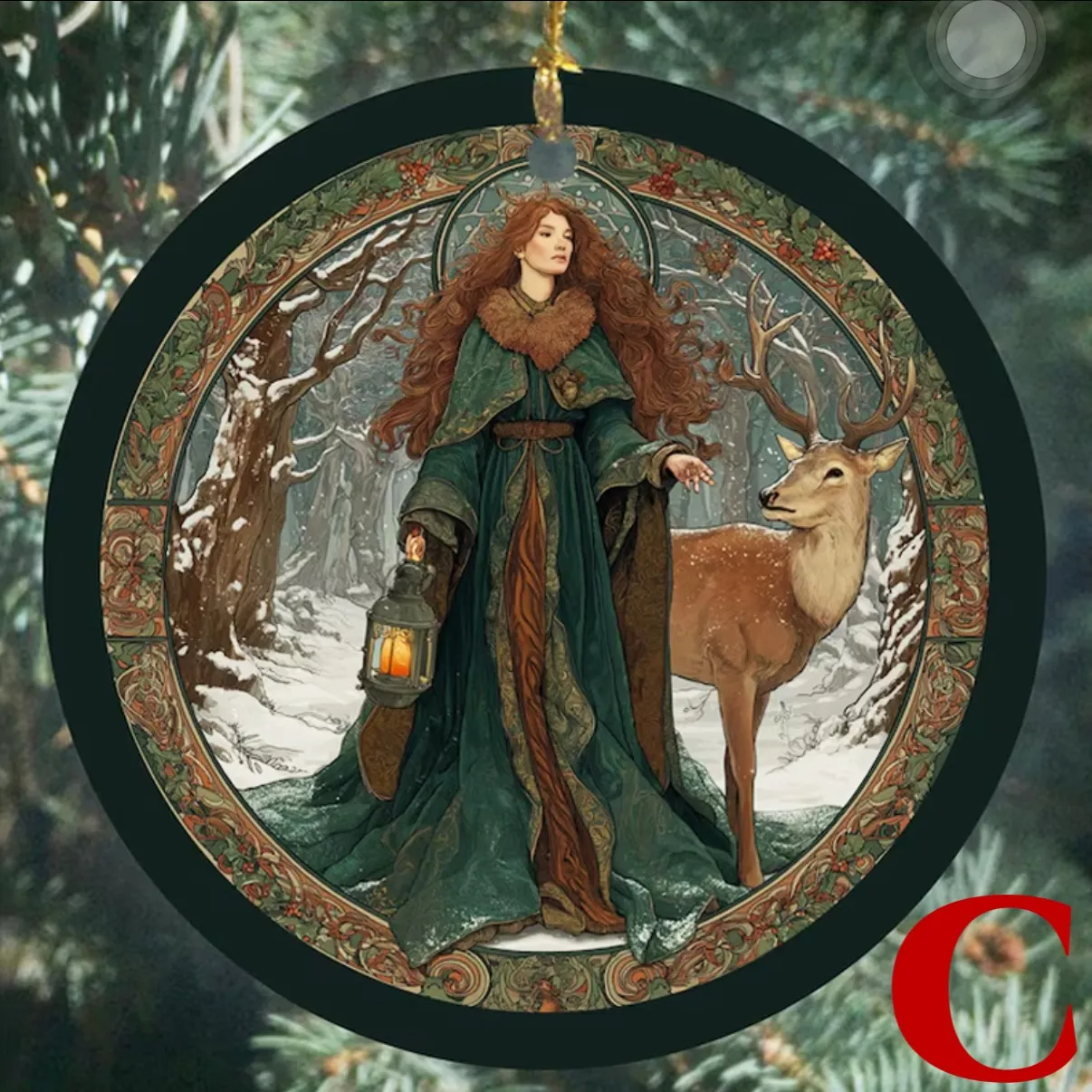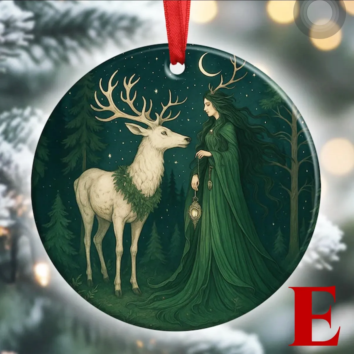 This Celtic Pagan ornament collection looks like it was painted in the pages of a forgotten book of winter myths – Green Man guardians, antlered stags, forest queens and snow-dusted woods watching over your Yule.
