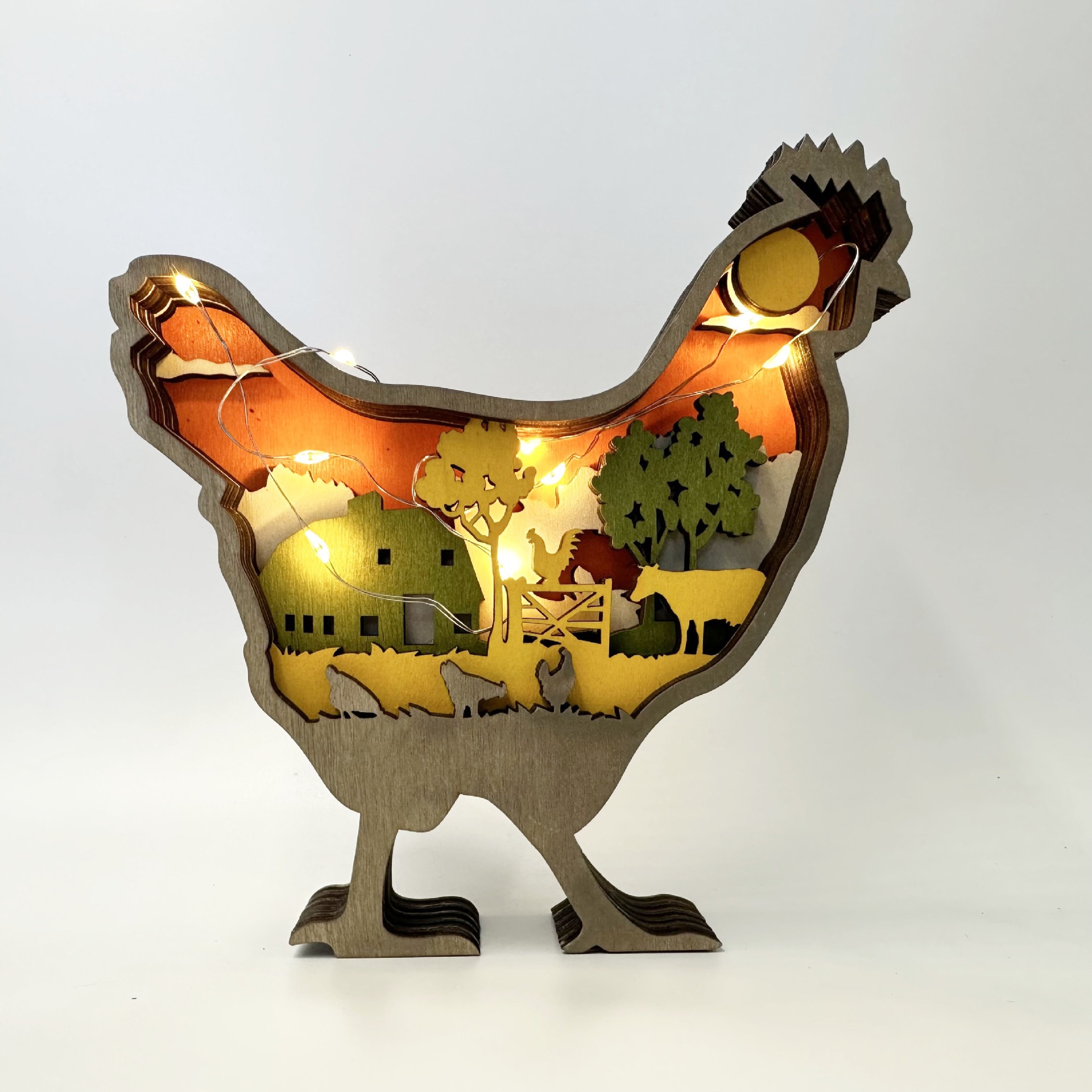 Wooden Hen Farm Light – Handcrafted Rustic Countryside Decor