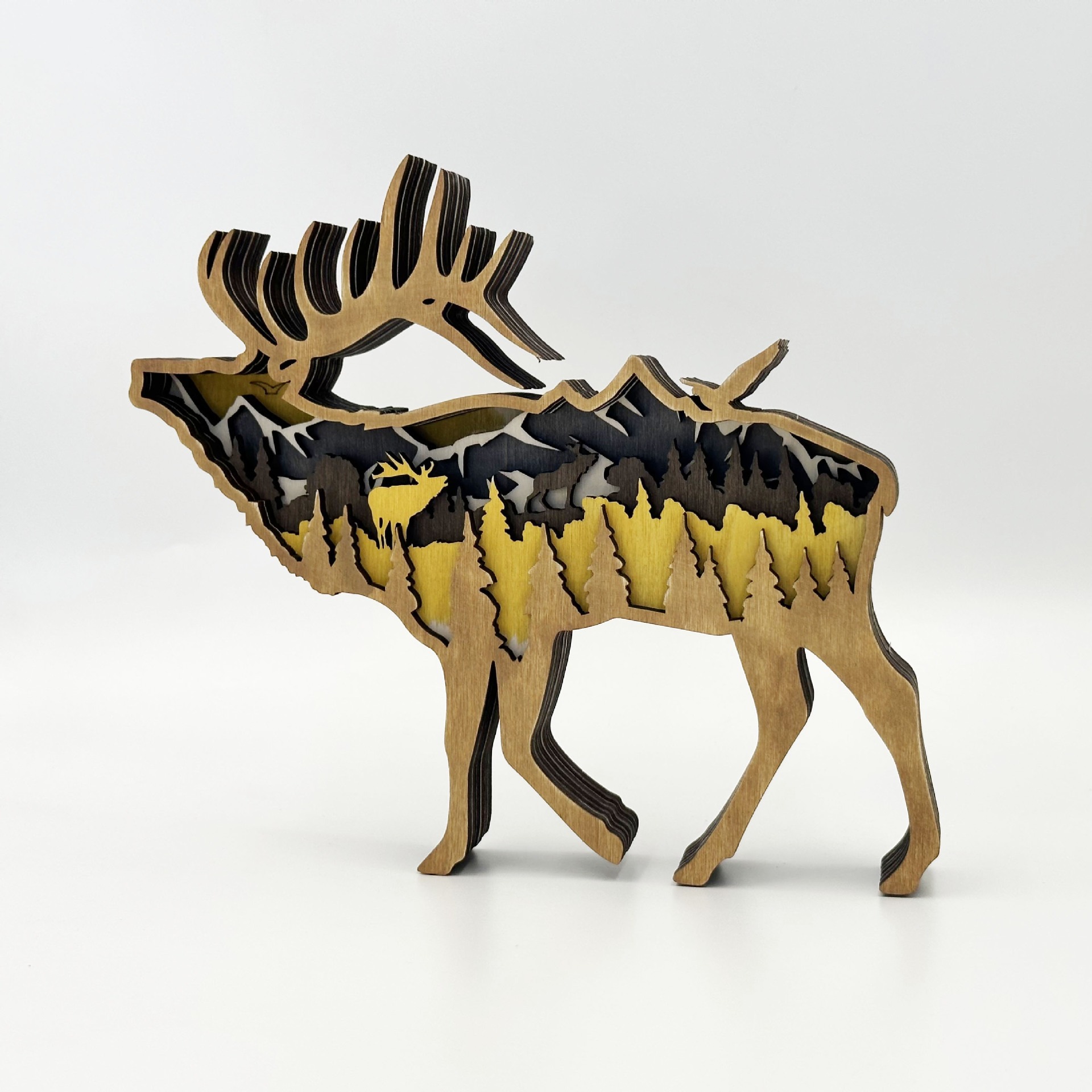 Wooden Moose Forest Light – Handcrafted Nordic Wilderness Decor