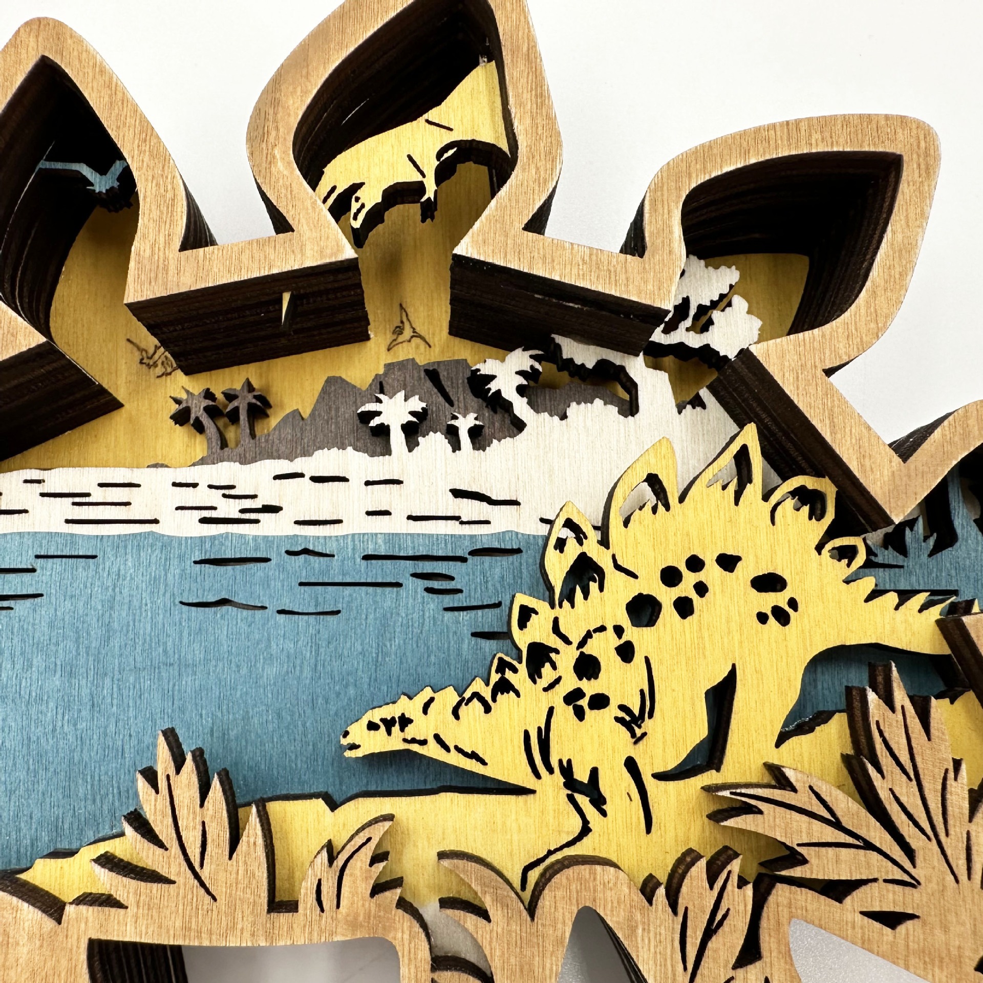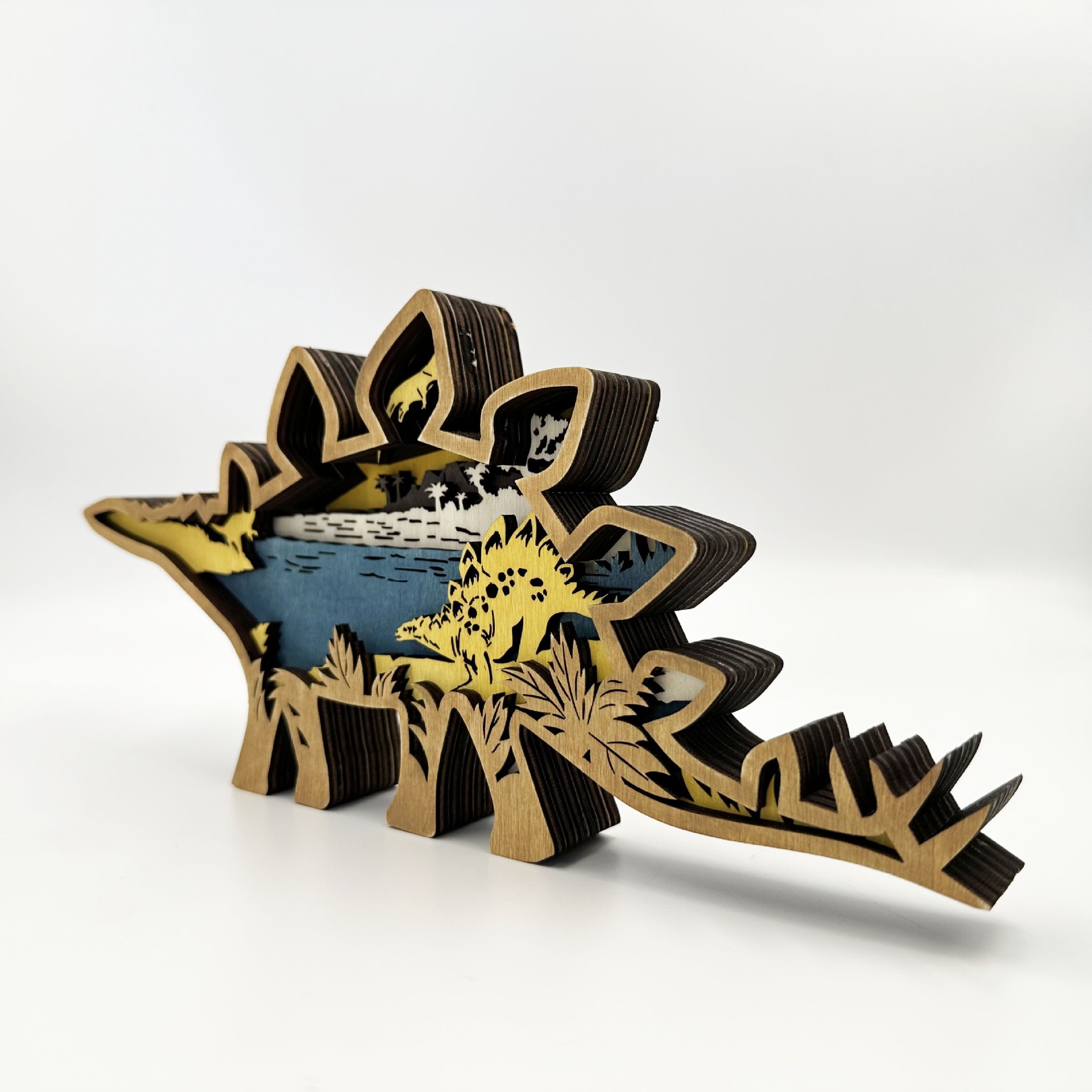 Wooden Stegosaurus Light – Handcrafted Jurassic Forest Decor